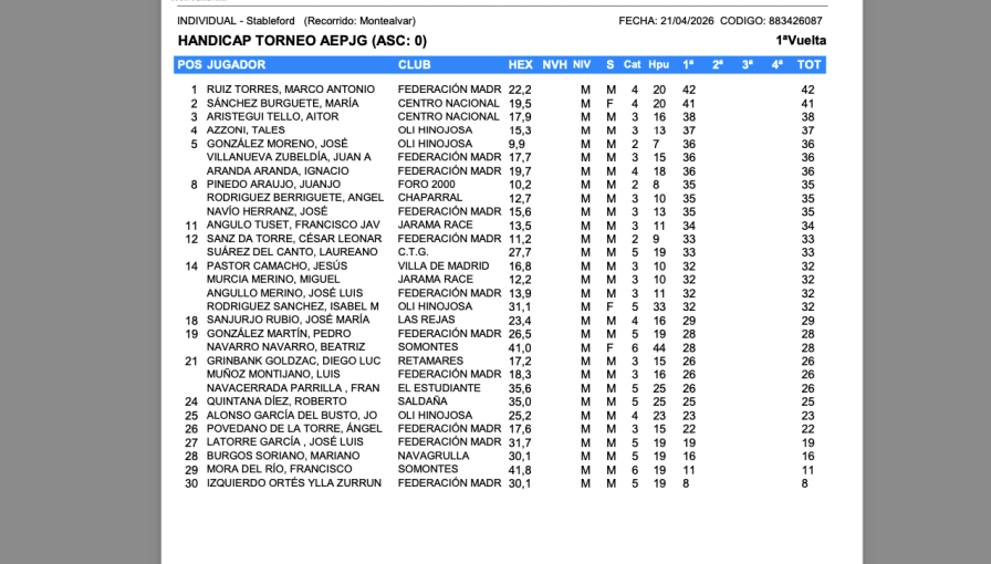 El Centro Nacional de Golf nos daba la bienvenida con un sol radiante y el típico frescor madrileño primaveral, a 37 socios deseosos de demostrar que ...